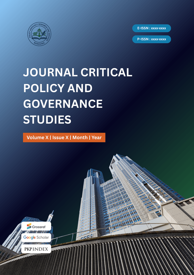 JCPGS : Jurnal Critical Policy and Governance Studies is an academic journal that focuses on publishing research articles and scholarly studies in the field of public administration and public policy. The journal aims to provide an academic platform for researchers, scholars, and practitioners to develop and disseminate critical perspectives on governance and public policy issues.